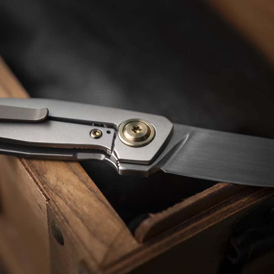 The most impressive thing about the Isola is the incredibly harmonious lines: blade and handle just flow into each other and the entire knife looks simply beautiful. The 3D contoured handle scales are – just like the entire hardware – made of titanium. The knife is opened with a discreet flipper tab, which is shaped to integrate naturally with the shape of the Isola.