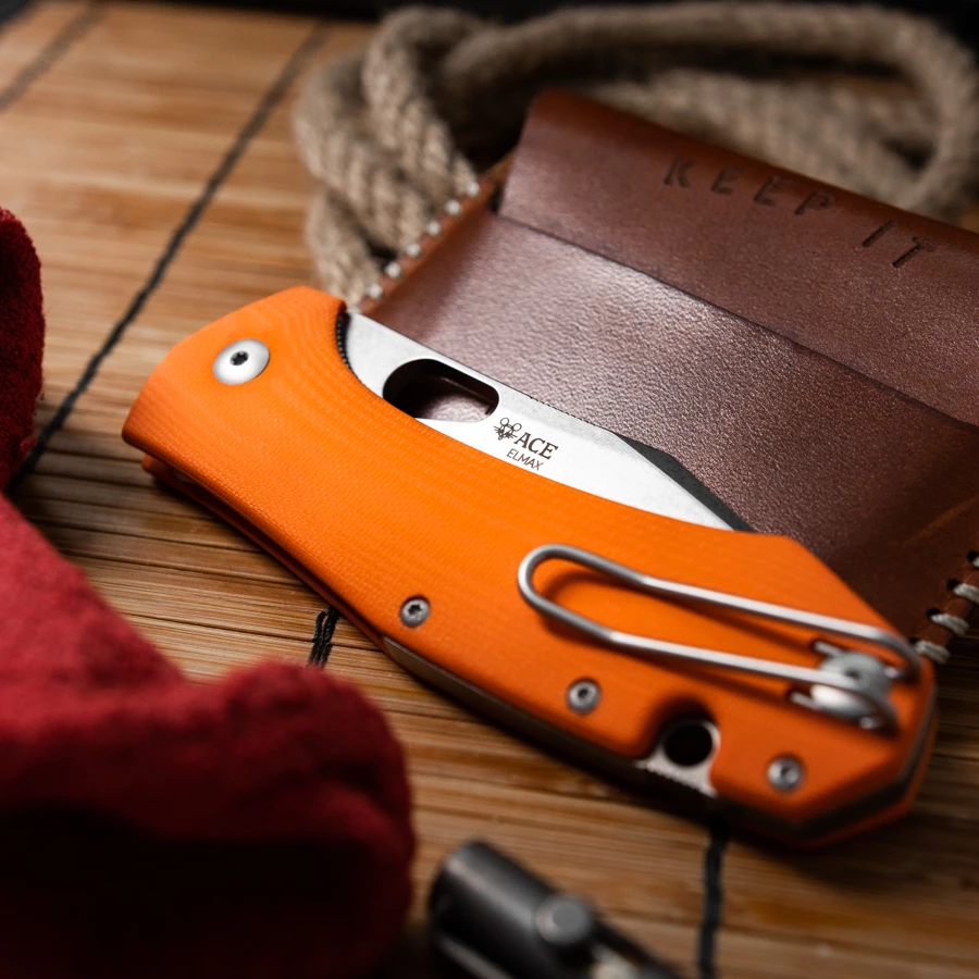 Jesper Voxnaes and Jens Anso have created a real eye-catcher with the blade. The swedge and the elegant curve of the tip give the Grand a very attractive appearance. For the steel GiantMouse chose Elmax, which was already used for the Clyde model. Elmax is not only able to be ground to a razor-sharp edge, but is also highly resistant to rust.