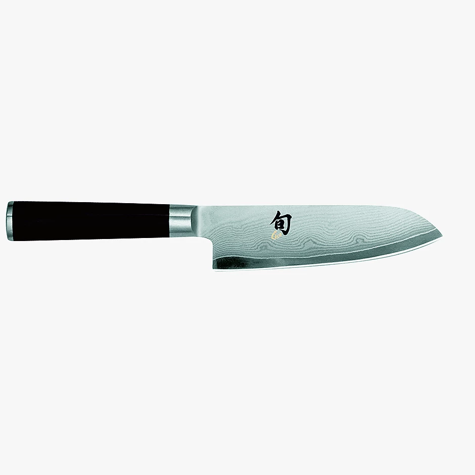Blade material: 32-layer Damascus steel Handle material: laminated Pakka wood Grinding: double-sided Blade hardness: 61±1 HRC Application: Suitable for all purposes. The traditional Japanese all-purpose knife (Santoku) is the most popular knife in Japan. However, it is just as suitable for European cuisine. With only 14 cm blade length the perfect entry into the Japanese knife world.